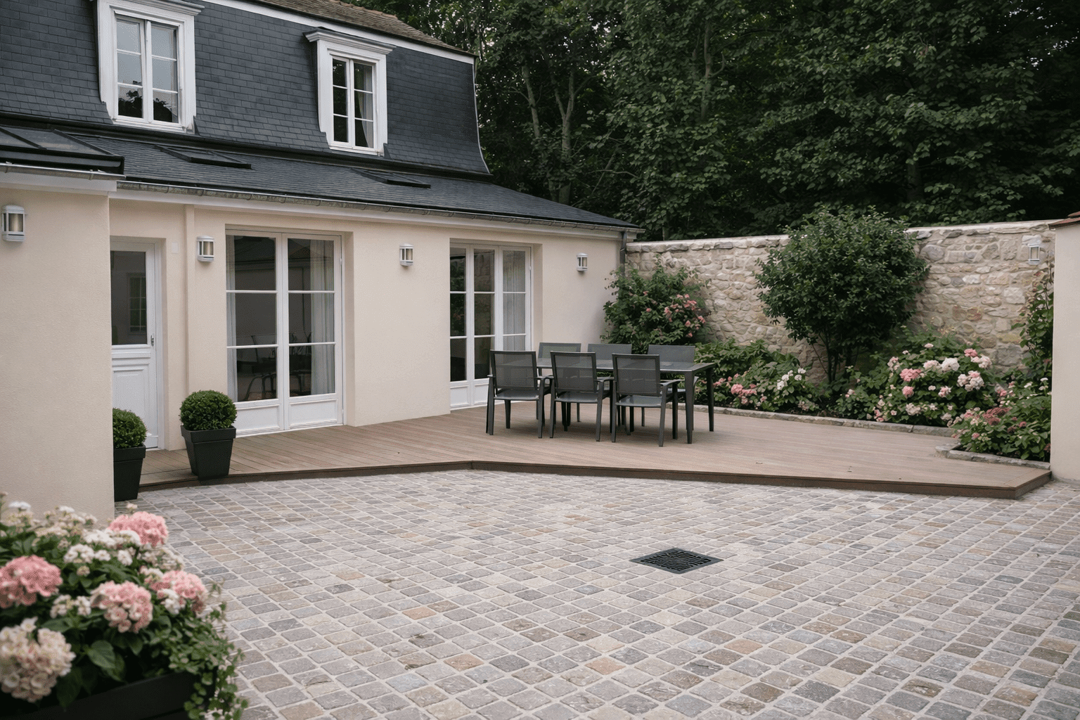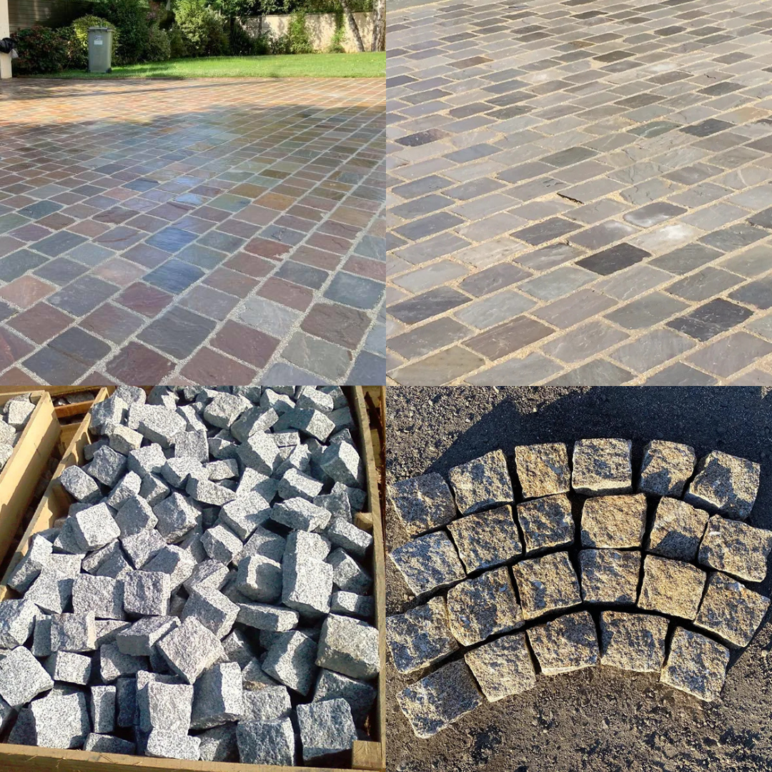 Le pavé est aussi un élément esthétique fort. Le Kandla multicolore apporte un rendu vivant et chaleureux, idéal pour des ambiances naturelles ou traditionnelles.