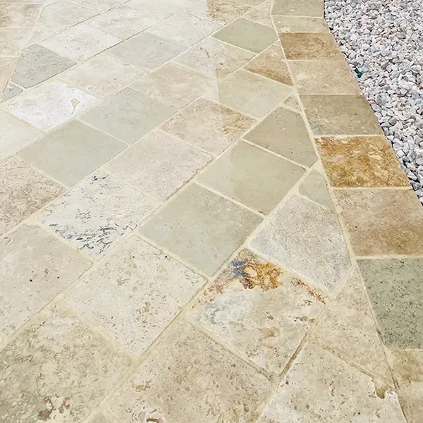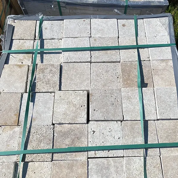 Pavés travertin 1er choix mix beige 15.3x15.3 cm Ep. 3 cm - Unité de vente: 1.0109 m² pour 39 pavés