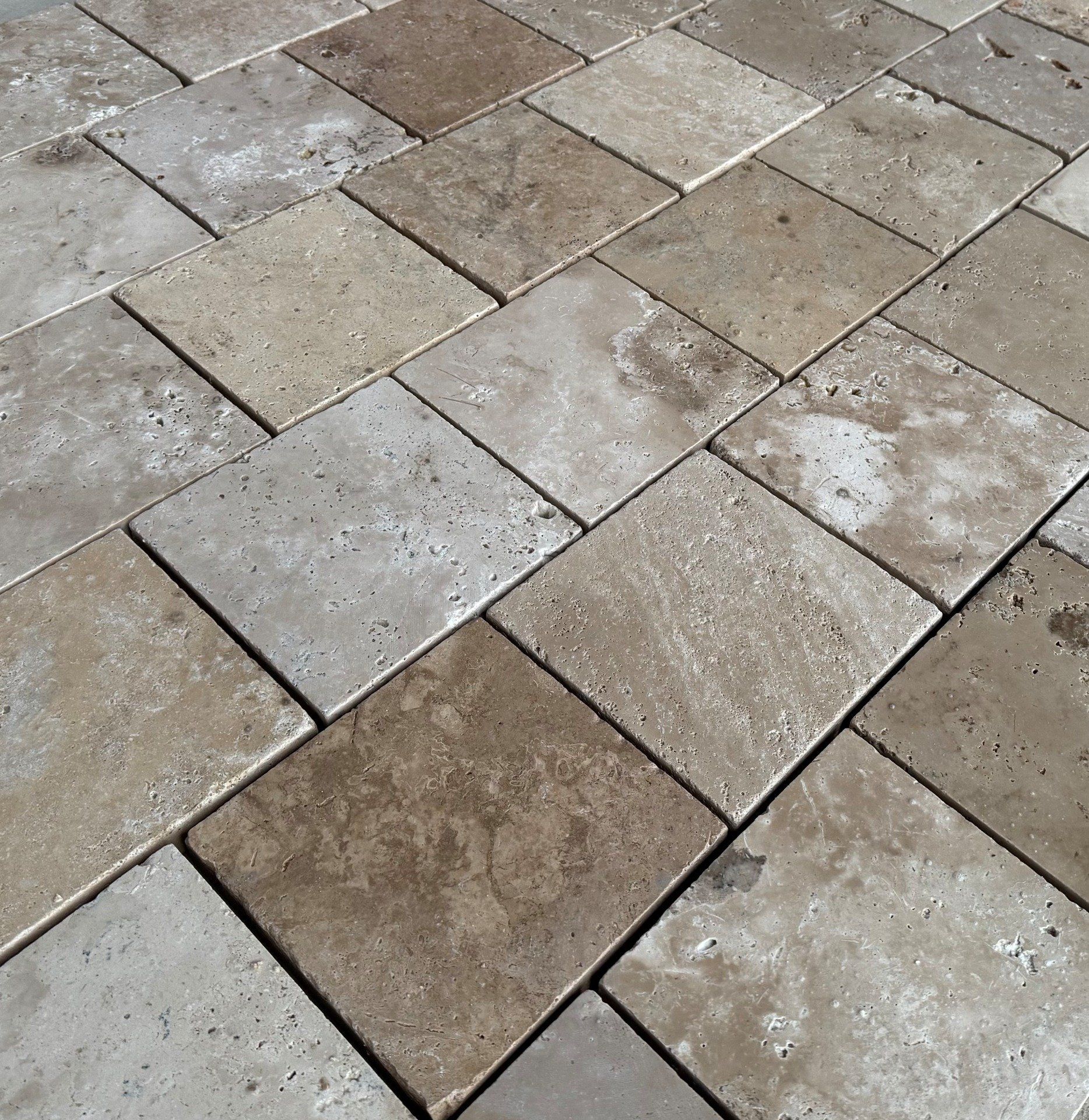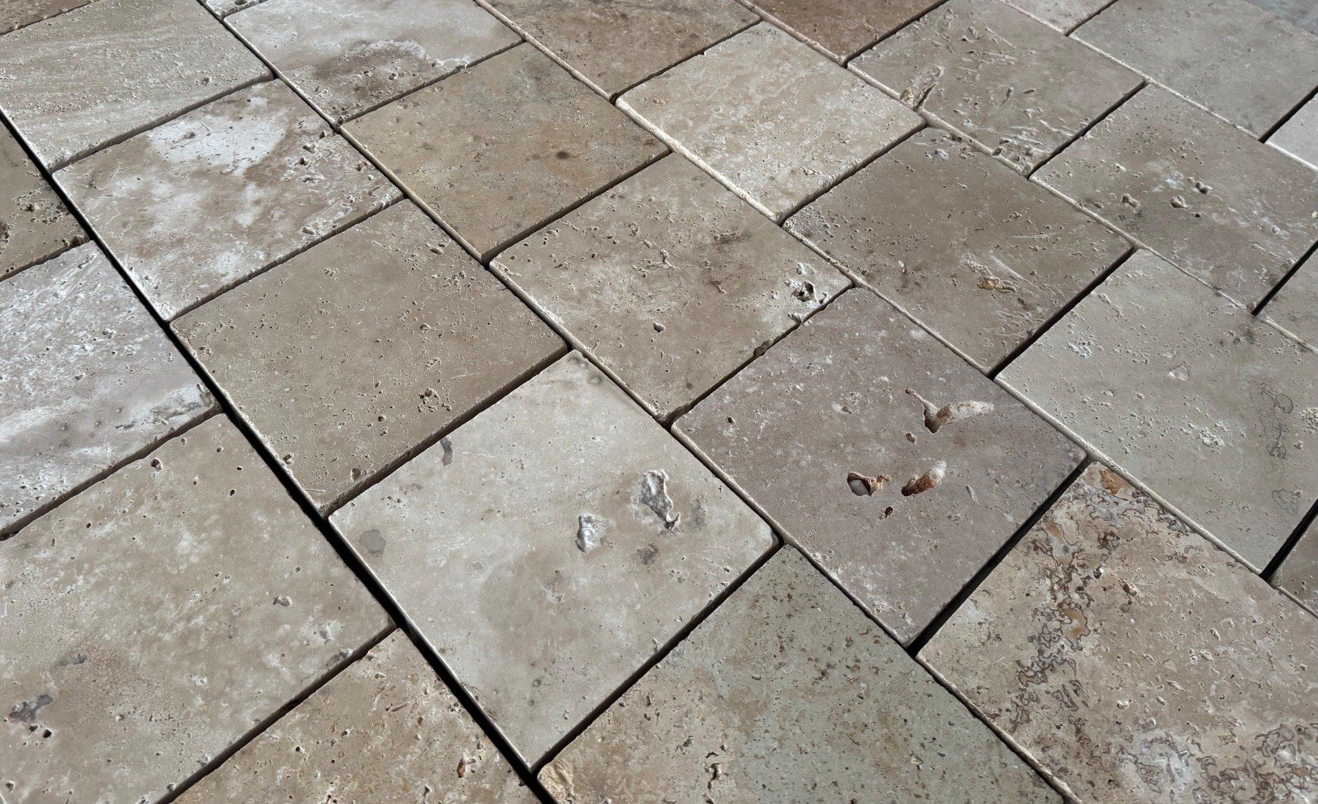 Pavés travertin 1er choix mix beige 20.3x20.3 cm ép.3 cm