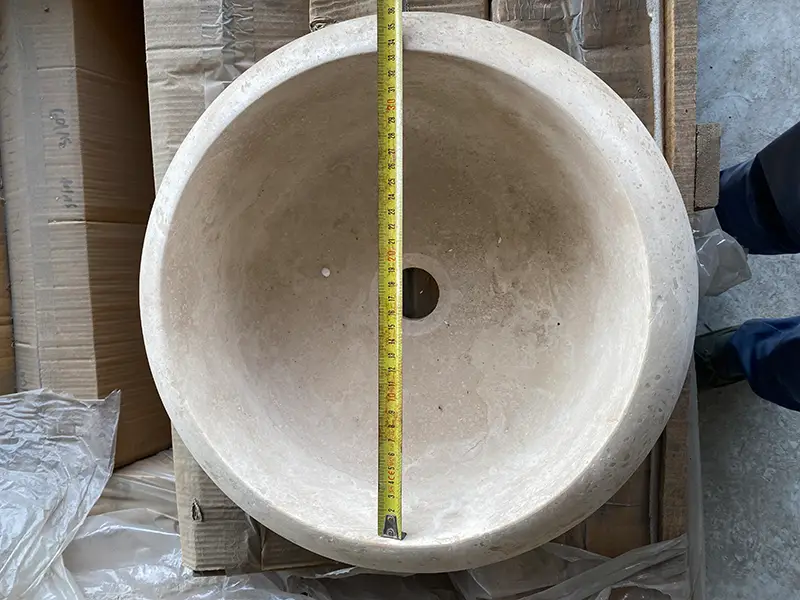 Vasque travertin 1er choix mix beige roue - diamètre 42 cm
